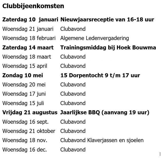 Toelichting: Middag/opening/afsluitingsritten max. 130 km (uit en thuis)